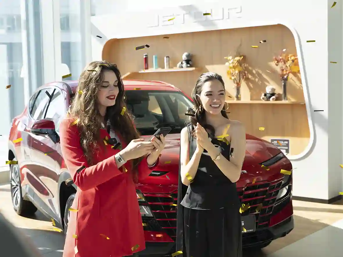 16 сентября компания JETOUR организовала розыгрыш двух моделей Dashing за полцены и других призов. В прямом эфире Генеральный Директор JETOUR по Международным Рынкам Джек Чэнь и Генеральный Директор Джетур Мотор Рус Коу Сюйгуан пообщались со зрителями и назвали победителей, которым достались компьютеры Apple. Также на мероприятии присутствовала амбассадор бренда JETOUR, двукратная чемпионка мира по фигурному катанию Евгения Медведева, которая объявила двух счастливчиков, которым достался главный приз – JETOUR Dashing за полцены.
